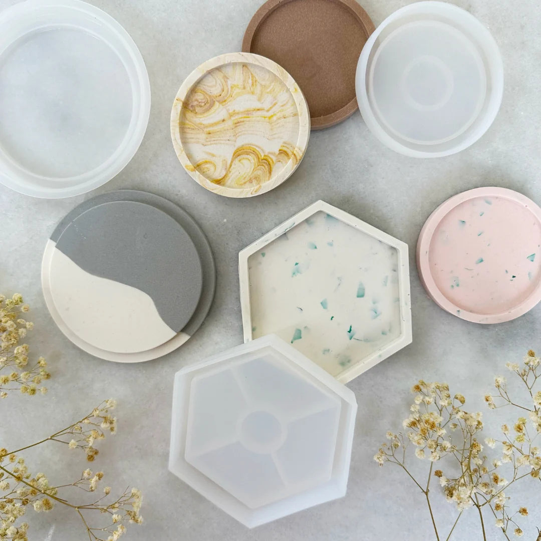 Silikone- og akrylforme til støbning af sojalys og jesmonite. Perfekte til DIY-projekter og kreativt håndværk – skab unikke og holdbare designs.