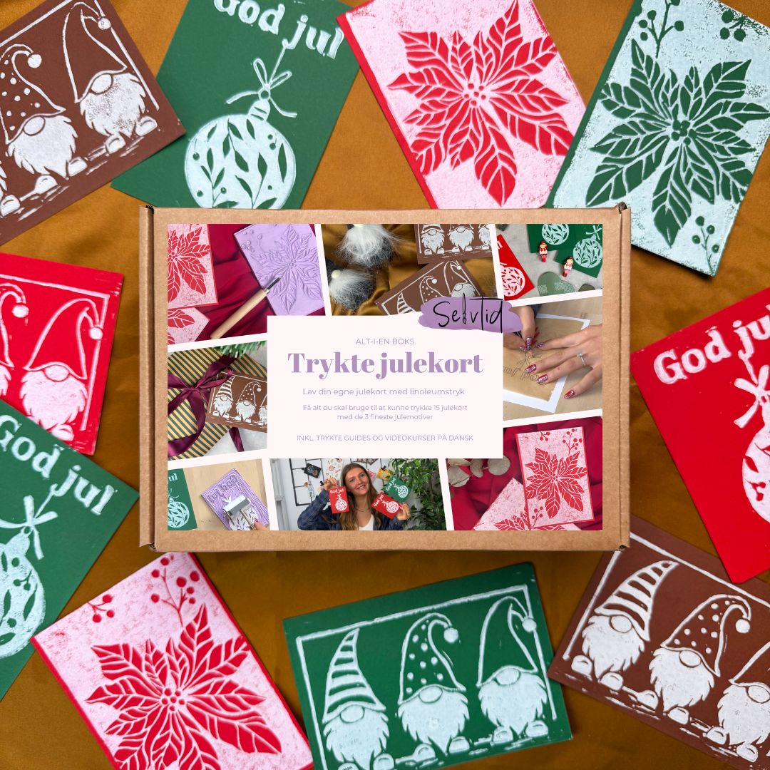 Trykte julekort: Den er så hyggelig at lave sammen - men køb en ekstra skærekniv (gerne et stort V-jern), så I kan skære på samme tid.