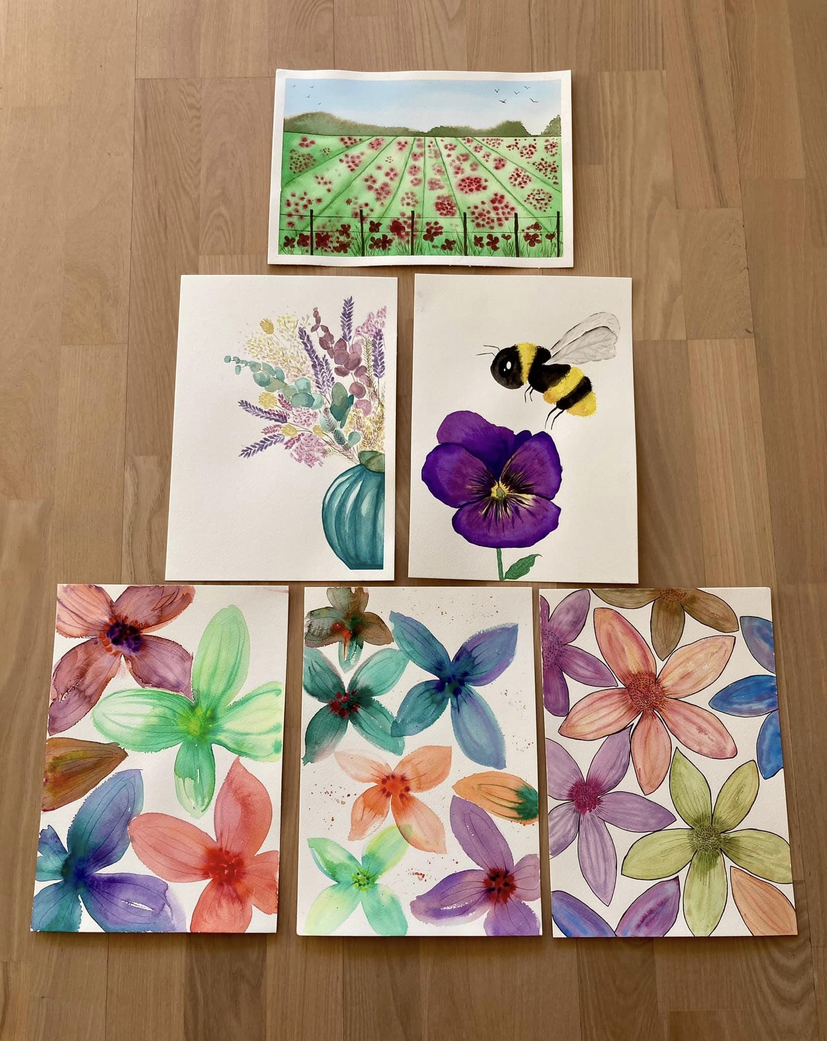 Vi maler en realistisk stedmoderblomst med smukke overgange og subtile detaljer. Og så kan du glæde dig til at lære en simpelt – og meget tilfredsstillende – teknik til at male bier.