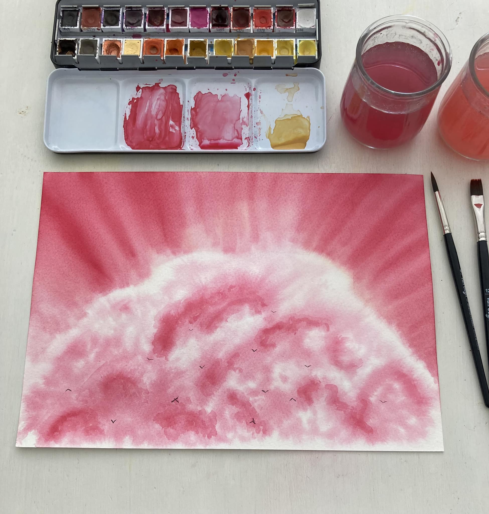 Sommeren er over os, ligesom den magiske og farverige himmel, der hver aften viser sig fra sin smukkeste side. Der er plads til alle dine drømme og ønsker i denne sky, som vi laver på et helt vådt papir og i kun ét enkelt trin.