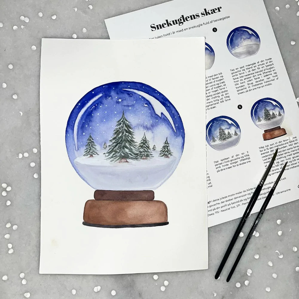 Lidt julestemning skal der være plads til! Med den smukke snekugle lærer du at skabe et ovalt landskab og bringer liv til kuglens glas. De simple træer bliver pyntet med den fine sne fog skaber et dejligt vinterlandskab.