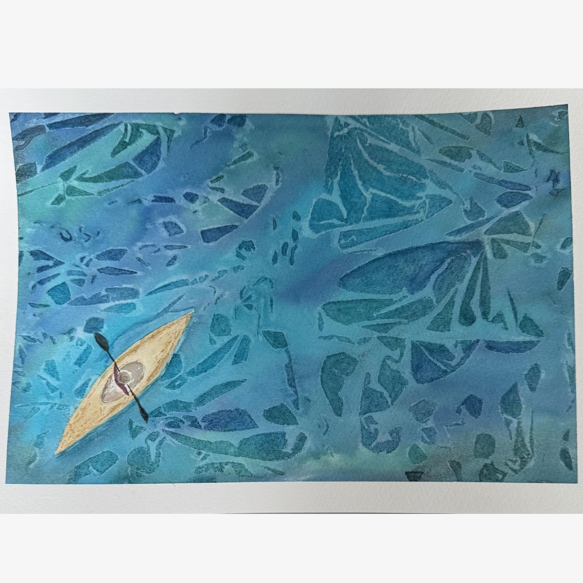 Lad tankerne forsvinde i den turkisblå havoverflade, der glitrer i solens stråler. Du lærer hvordan, du kan skabe en helt fantastisk tekstur med intet mindre end plastfolie, der skaber tilfældige mønstre, som du efterfølgende dykker ned i og fremhæver.