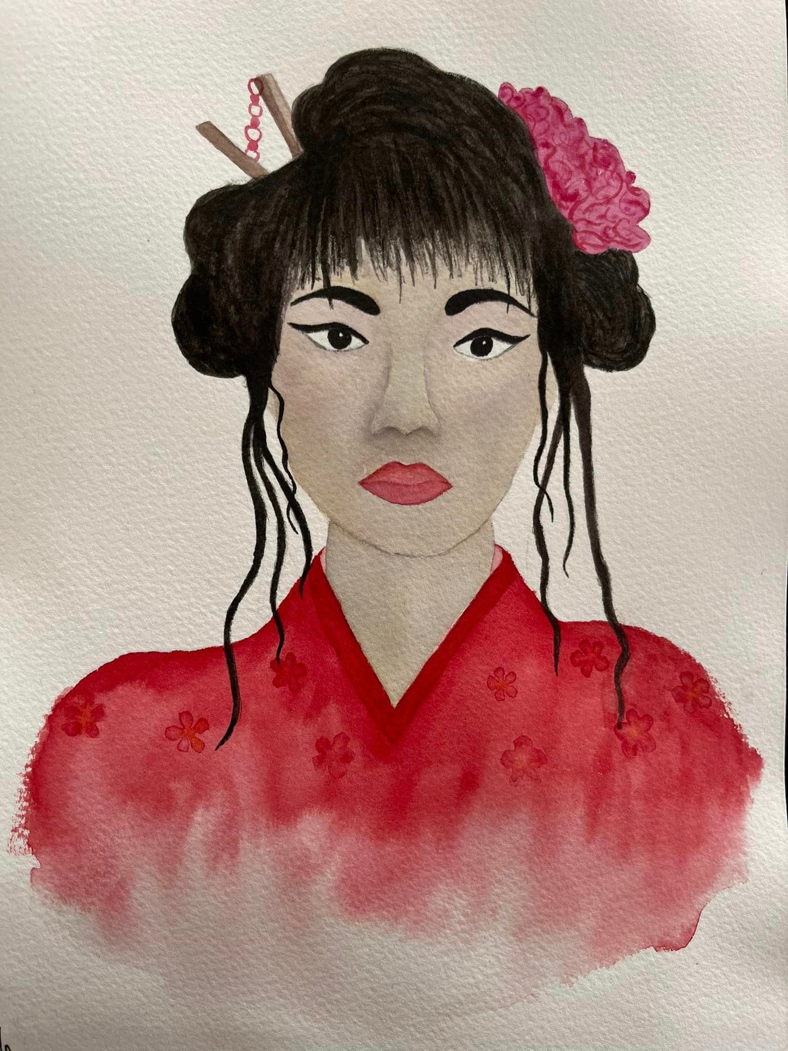 I dette projekt er der fokus på de fine og elegante detaljer, som Japan i høj grad også byder på. Vi skaber hele baggrunden med en våd-på-våd teknik, så du får følelsen af at være omringet af kirsebærtræer.