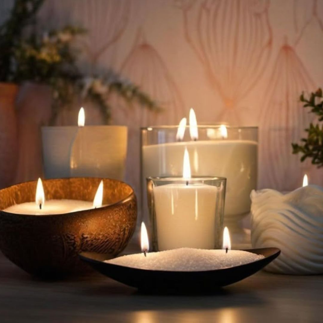Vælg mellem et sæt med 500 g lys pulver og 5 bomuldsvæger dyppet i stearin (8 cm. længde) eller 1 kg. lys pulver og 10 bomuldsvæger.