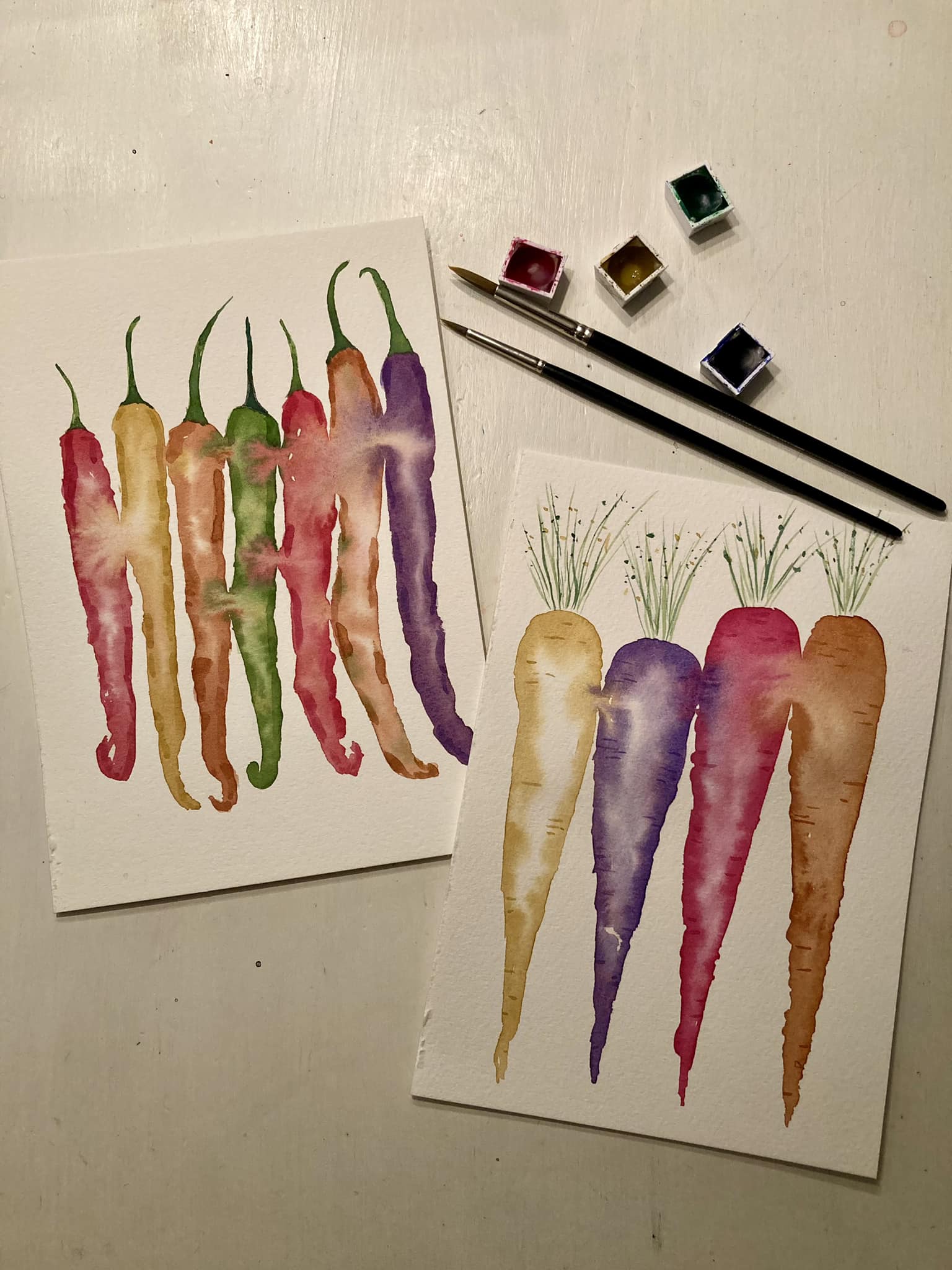 I det første projekt kaster vi os over noget af det skønneste ved akvarelmaling! Nemlig dejlige farver, der flyder sammen i vandet og skaber et smukt spil. Og så tager det faktisk ikke særlig lang tid at male, så det er et perfekt projekt til den korte kreative stund.