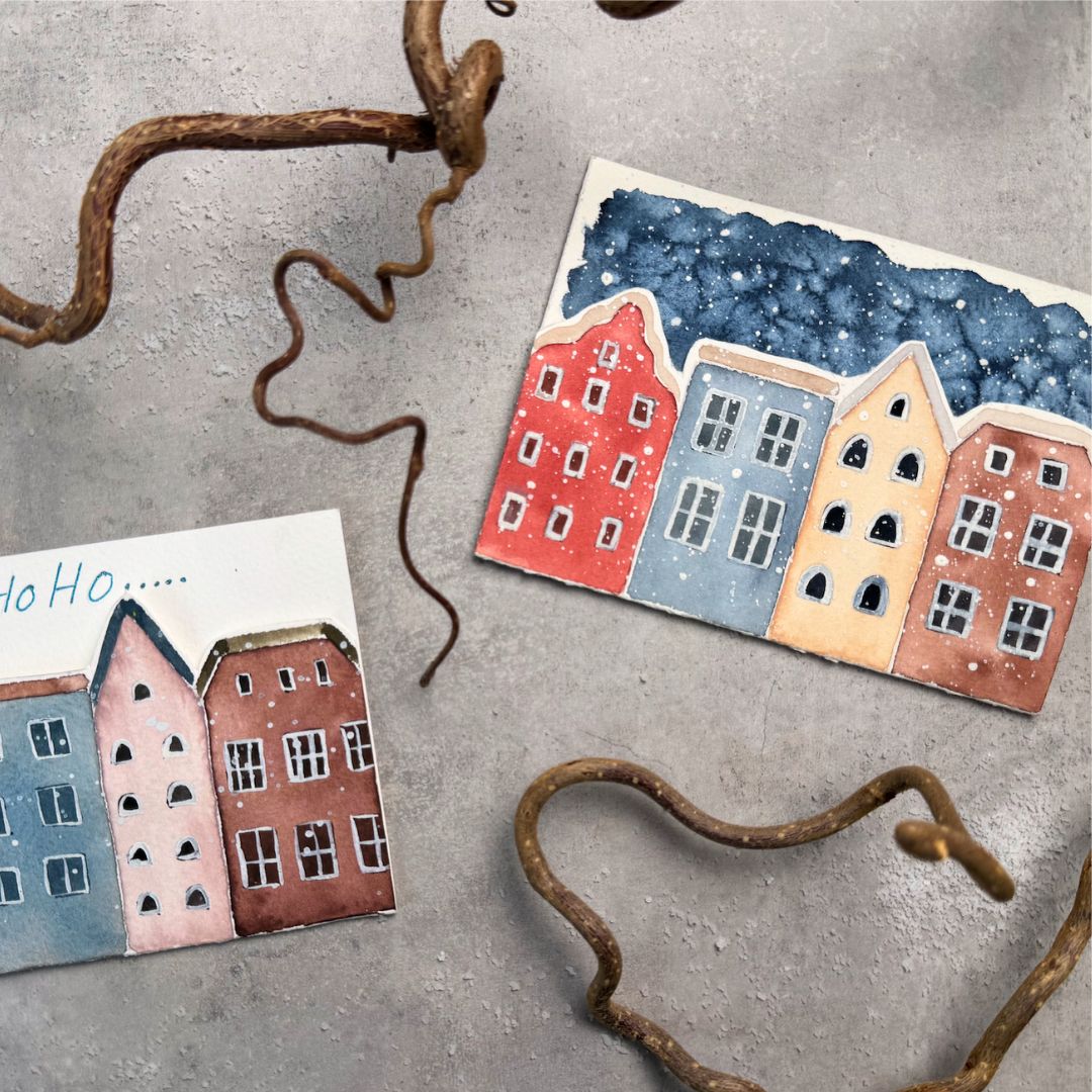 Gør julen ekstra hyggelig og særlig med dine egne hjemmemalet (og hjemmeskåret) julekort 💌🎁 Vi tager dig i hånden hele vejen, så selv hvis du får skabt de fineste kort - også selvom du aldrig har malet før!