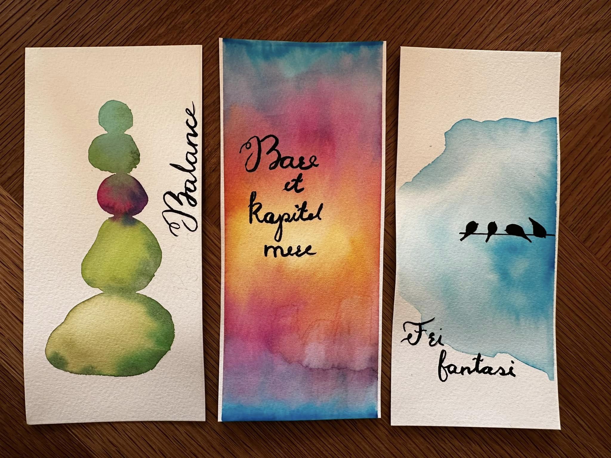 Lær dine nye produkter at kende med de simple bogmærker. Vi bruger dem på forskellige måde og kombinerer dem med elegante akvarelbaggrunde. Du vil også blive taget igennem kalligrafibogstaver og små øvelser med pen 68 brush.