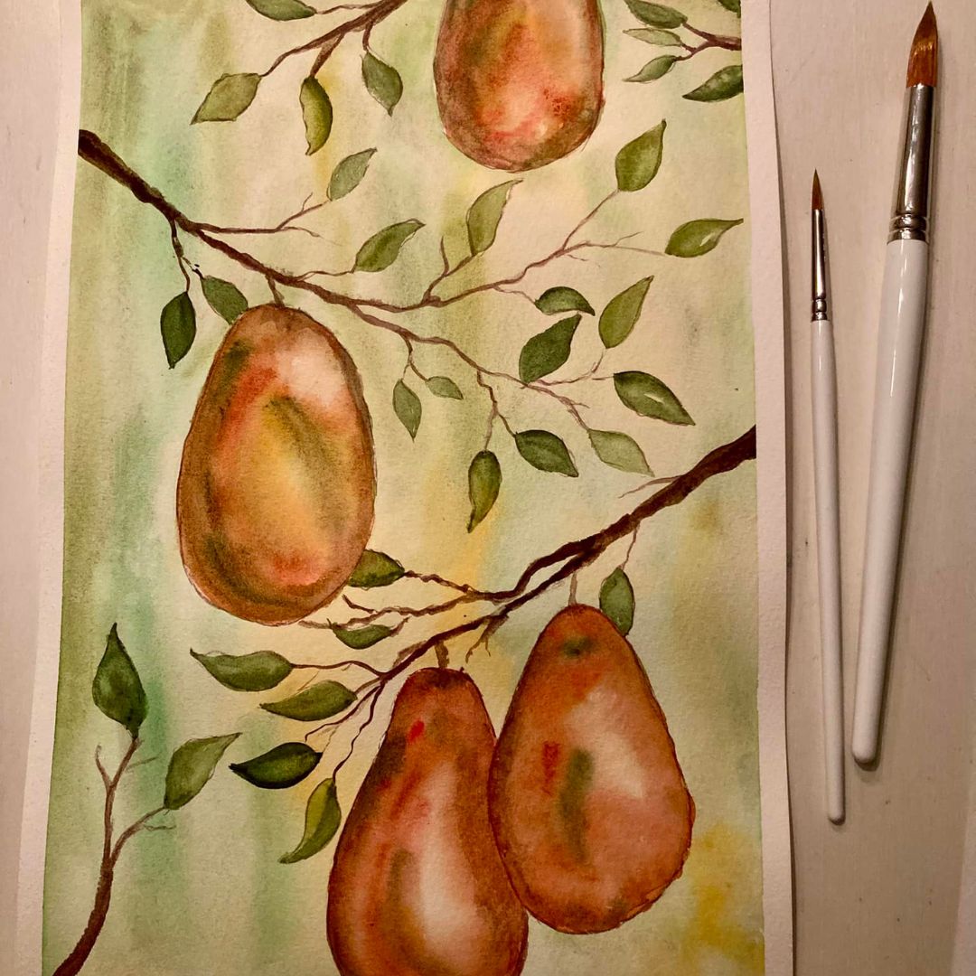 Et helt projekt dedikeret til den løse akvarel stil. Med den store str. 12 pensel fra Stelling, bliver det pærenemt at male en stor og fyldig baggrund. Du lærer at male smukke blade i en masse nuancer, samt nemme og simple teknikker til at skabe dybde i dine pærer.