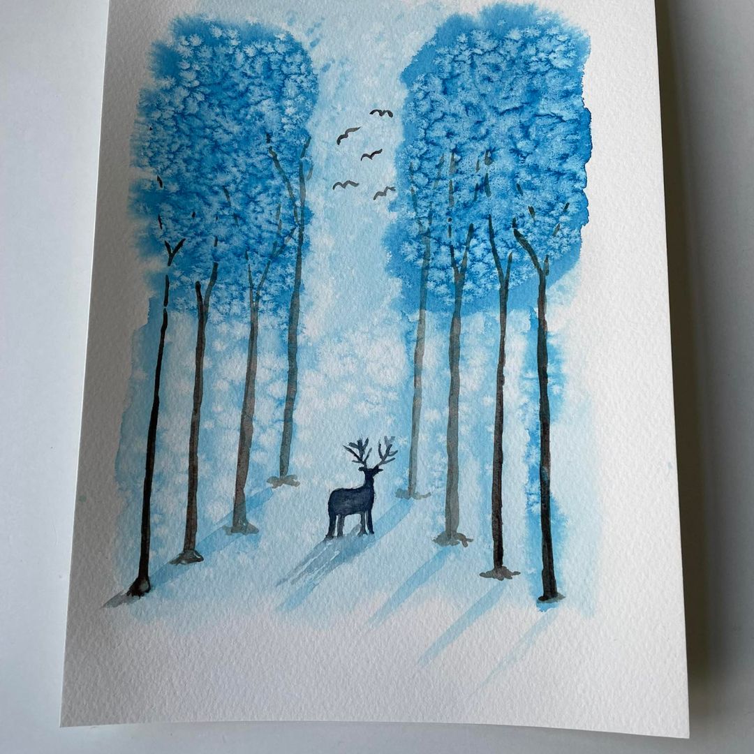 Bliv forelsket i det uventede! I dette nærmest monokromatiske projekt, går vi i dybden med salt-teknikken. Salt er et fantastisk redskab at bruge i sine akvarelmalerier, som skaber den smukkeste krystallisering i dine trækroner.