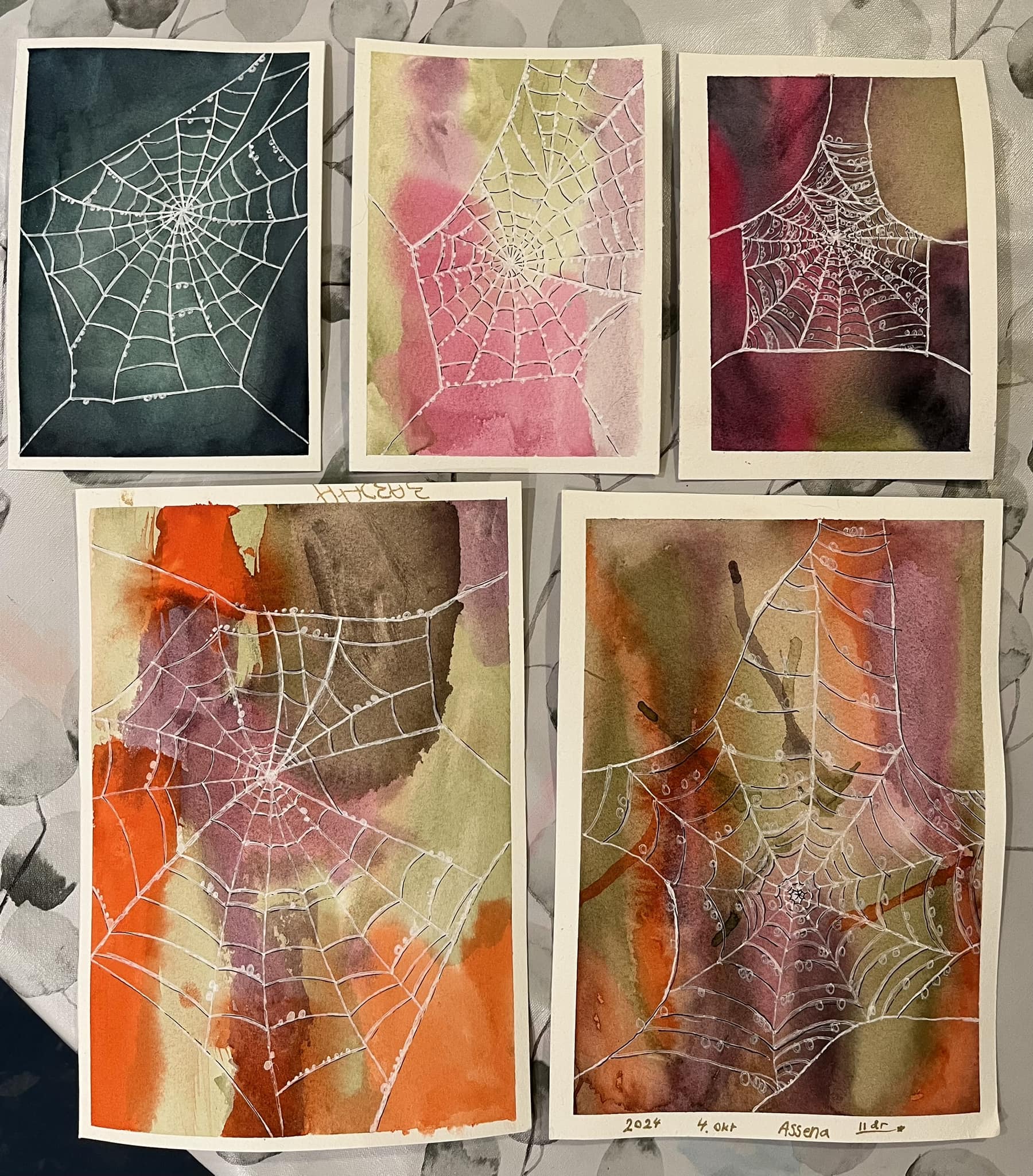 Skab en psykedelisk baggrund ved at kombinere tre karambolerende farver på den mest tilfredsstillende måde. Og glæd dig så til at tegne et realistisk spindelvæv med månedens ekstra produkter.